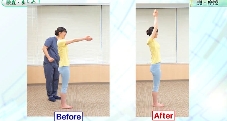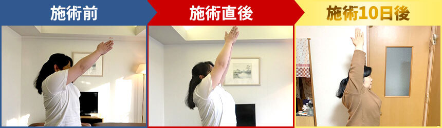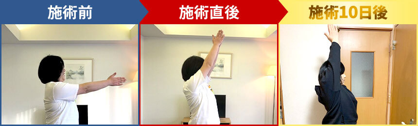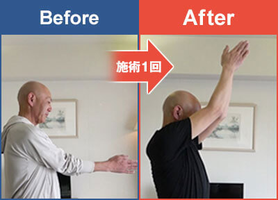 仕事の疲労から上半身全体にかけて痛みがひどく、腕も上がらなかった状態でした。