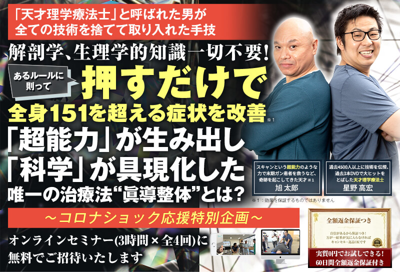 今回発表した「眞導整体」はあなたを眞の治療家に導き、患者さんの心身を眞に導ける、そんな治療法になっています。